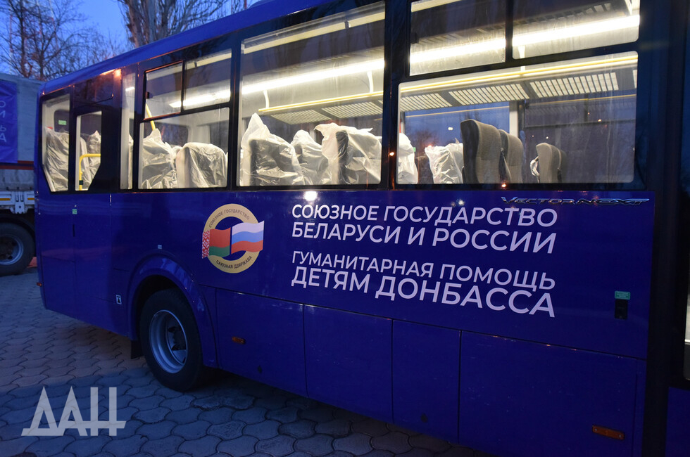 В рамках гуманитарной программы «Детям Донбасса» он передал училищу автобус ПАЗ «Vector NEXT» на 30 мест, еще одна такая машина, по словам Мезенцева, направлена в ЛНР. Автобусы изготовлены по специальному заказу с особой комплектацией. Также госсекртарь привез для двух регионов 111 компьютеров, 10 проекционных аппаратов, столько же интерактивных досок, два лингафонных кабинета.