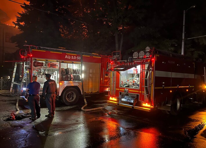ФОТО: Здание торгового университета в центре Донецка загорелось после обстрела кассетными боеприпасами
