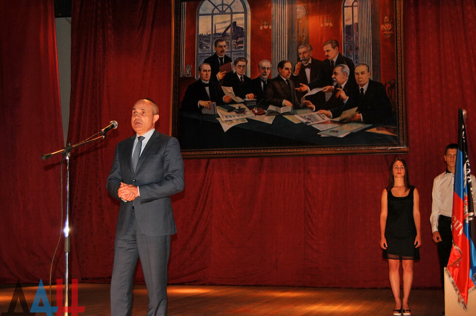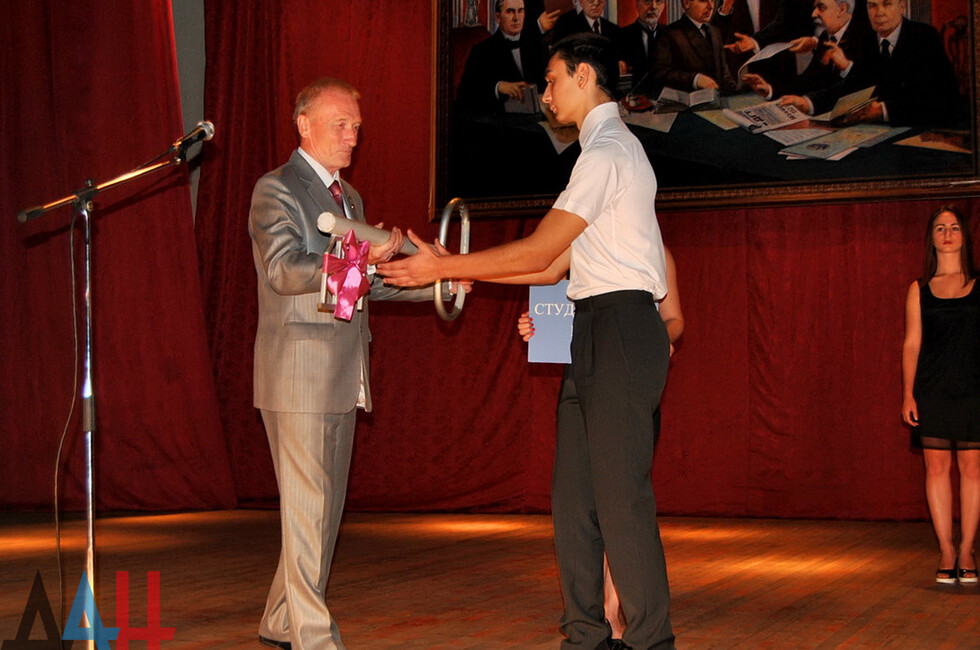 Ребят также поздравил со сцены директор донецкого завода «Донфрост» Константин Климов, который пообещал лучшему студенту из числа обучающихся на первом курсе по итогам учебного года подарить холодильник.
