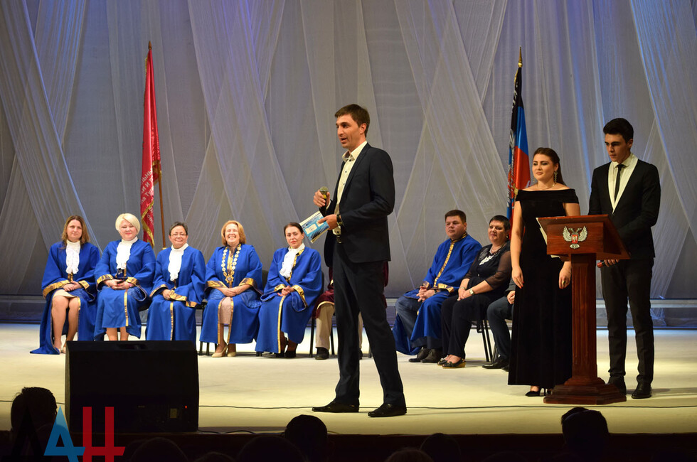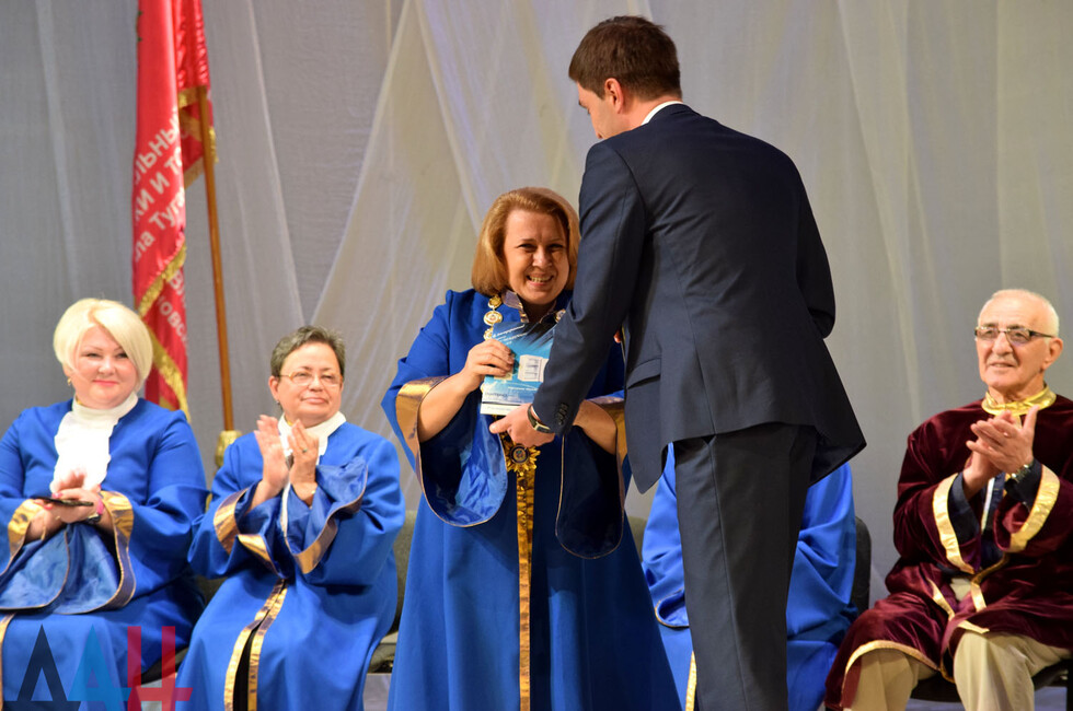 Донецк, 30 авг – ДАН. Церемония посвящения в студенты учащихся Донецкого национального университета экономики и торговли прошла сегодня в столице ДНР. Торжества прошли в Донецком государственном академическом музыкально-драматическом театре, в них приняли участие 818 первокурсников.