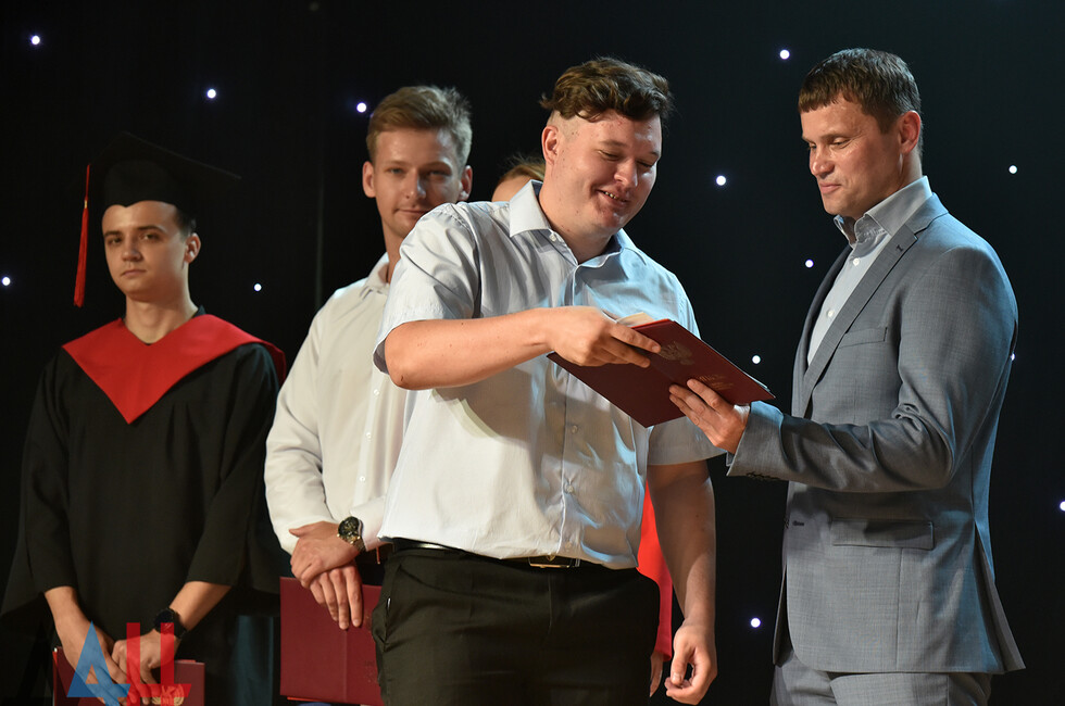 «В Донбасской аграрной академии прошло вручение дипломов выпускникам по направлениям подготовки: «Агрономия», «Садоводство», «Зоотехния», «Юриспруденция» и «Психология». Всего у нас 104 выпускника, из них 23 – получили дипломы с отличием. По первым трем специальностям – это первый в истории выпуск», – сказал культорганизатор академии Максим Фомченков.