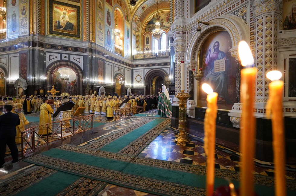 «Перед началом Божественной литургии Святейший Патриарх совершил поклонение мощам святителя Филарета, митрополита Московского. Его Святейшество совершал богослужение в тех же интронизационных облачениях и с копией жезла святителя Петра, что и семнадцать лет назад», — отметили в епархии.