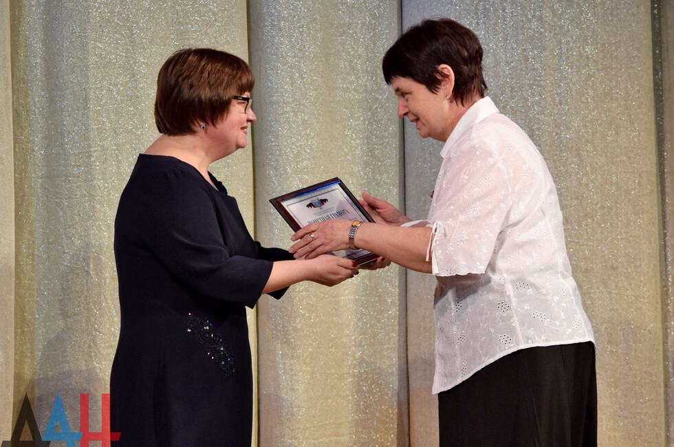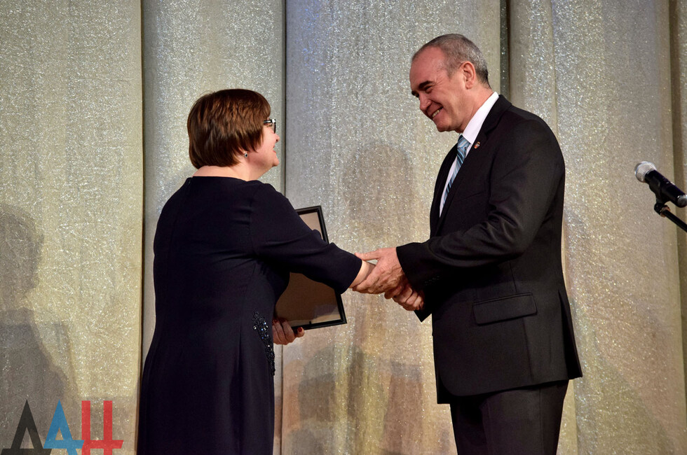 Сразу после выступления Поляковой была вручена благодарность Главы ДНР за достижения в области образования и науки. Министр в свою очередь поздравила ректора Светлану Беспалову, вручив ей почетную грамоту и нагрудный знак «За особые трудовые заслуги». Еще 11 сотрудников вуза получили ведомственные награды.