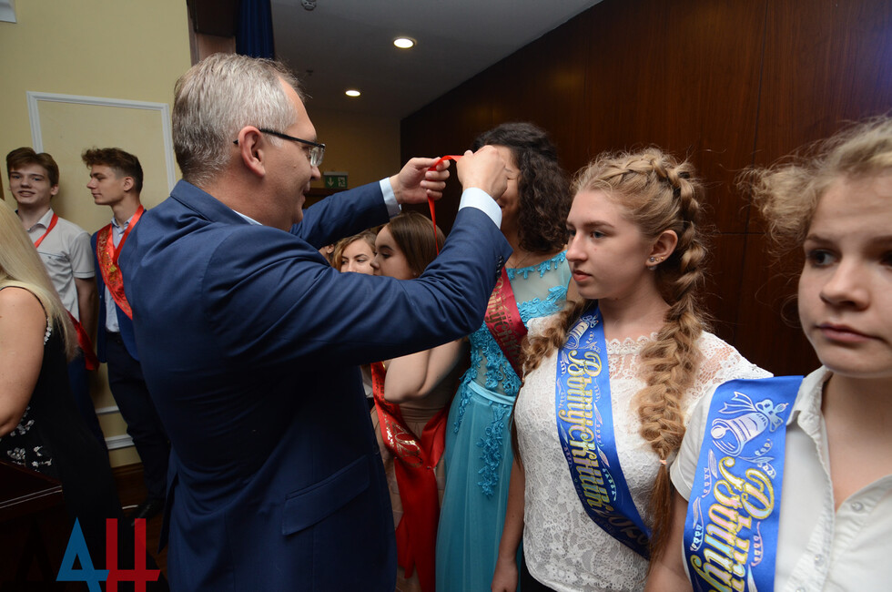 Из более 9000 выпускников по всей Республике 686 отмечены золотой медалью, 195 – серебряной. Церемония продолжится в четверг, 23 июля. Награды вручат медалистам из всех районов ДНР. *зх*мк*пп