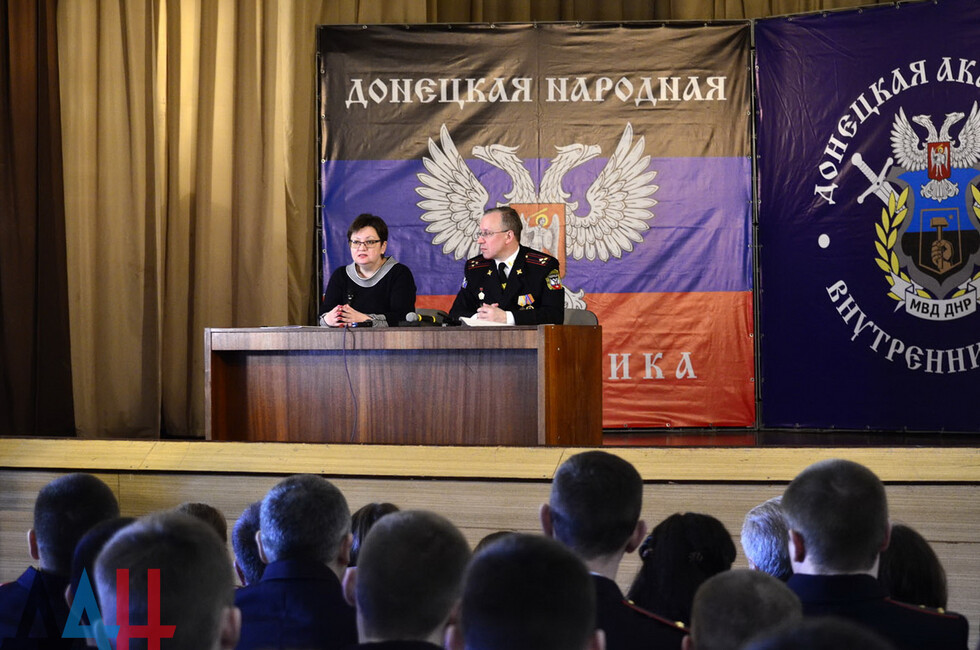 Донецк, 31 мар – корр . ДАН. Министр образования и науки ДНР сегодня провела встречу с курсантами Донецкой академии внутренних дел и ответила на интересующие их вопросы, в числе прочего касавшиеся будущего трудоустройства. Мероприятие проходило в одном из корпусов учебного заведения.