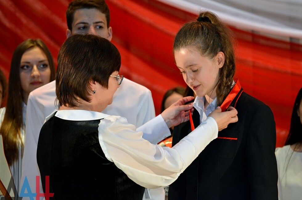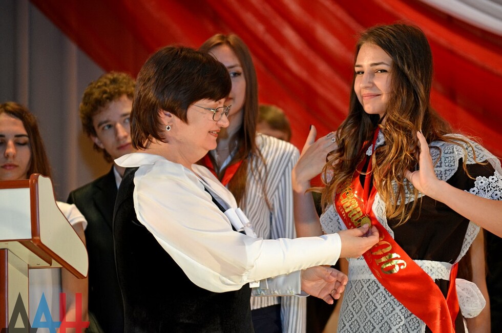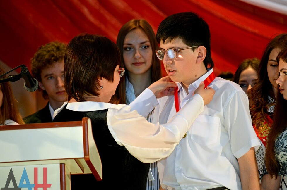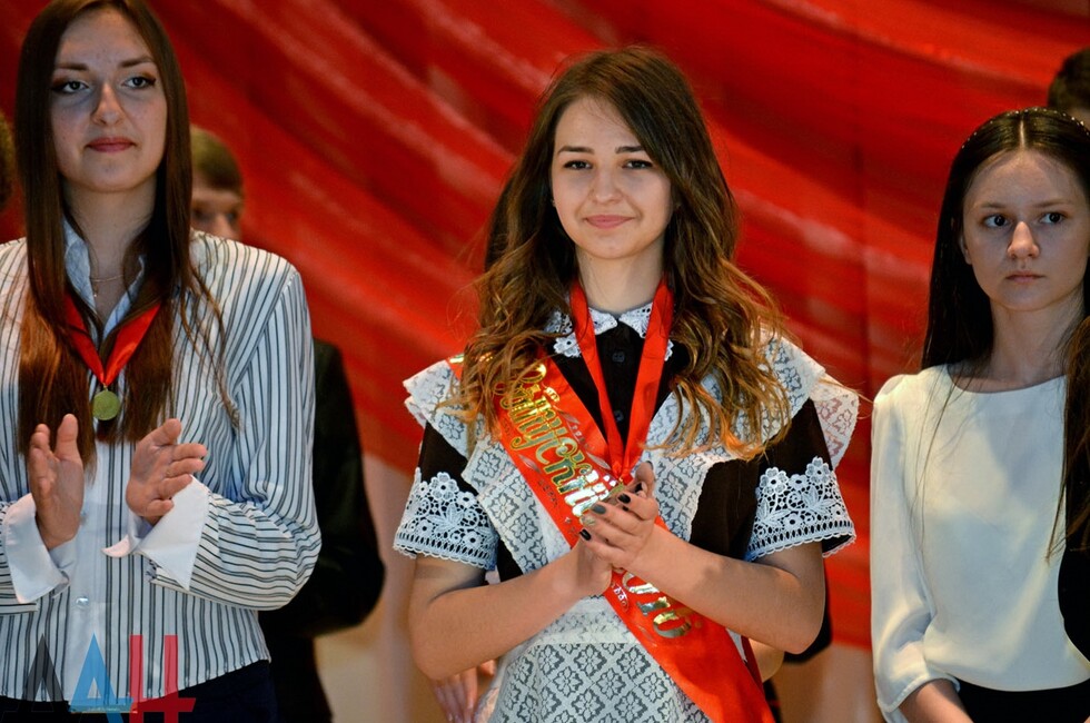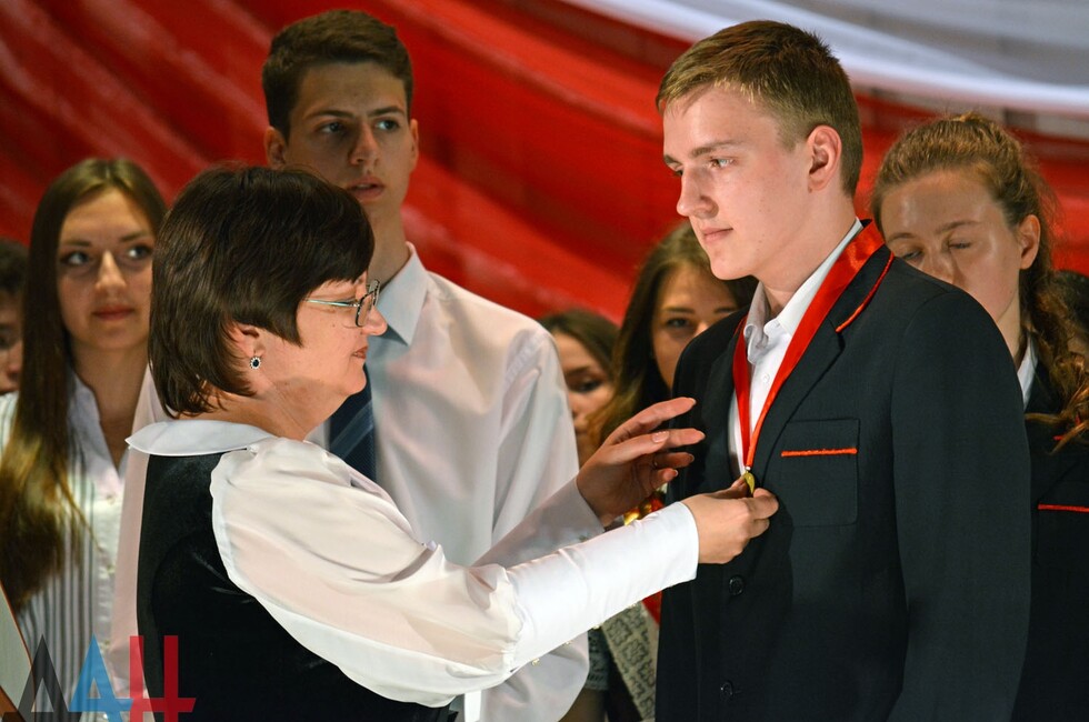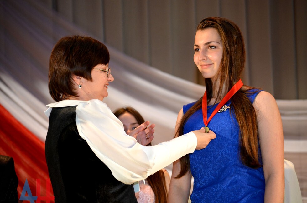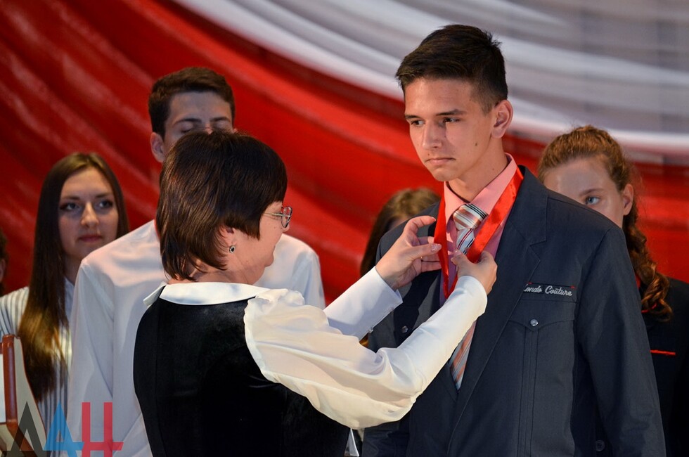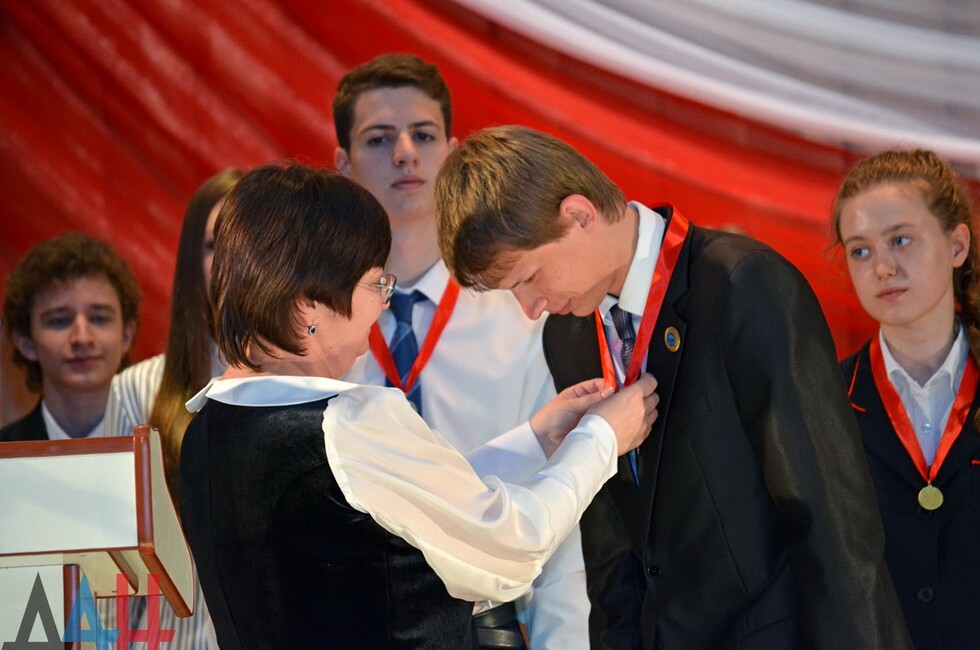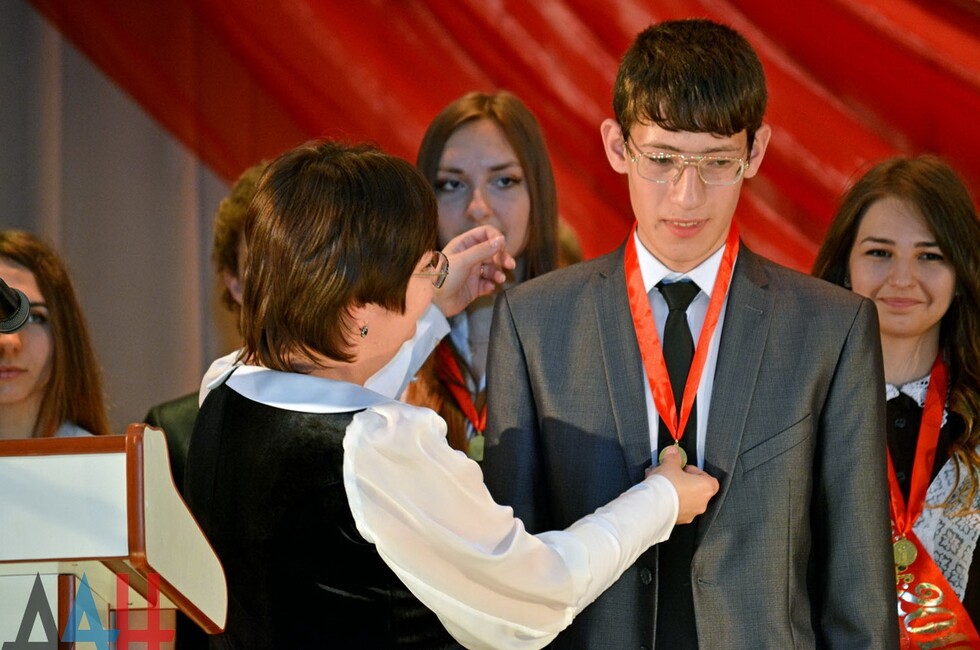 Первыми получили награды 26 лучших выпускников, которые побеждали в республиканских олимпиадах, становились лауреатами международных конкурсов и призерами защиты работ малой академии наук ДНР. «Золото» получили те, кто за период обучения в старших классах и по итогам ГИА, имеют наивысшие баллы.
