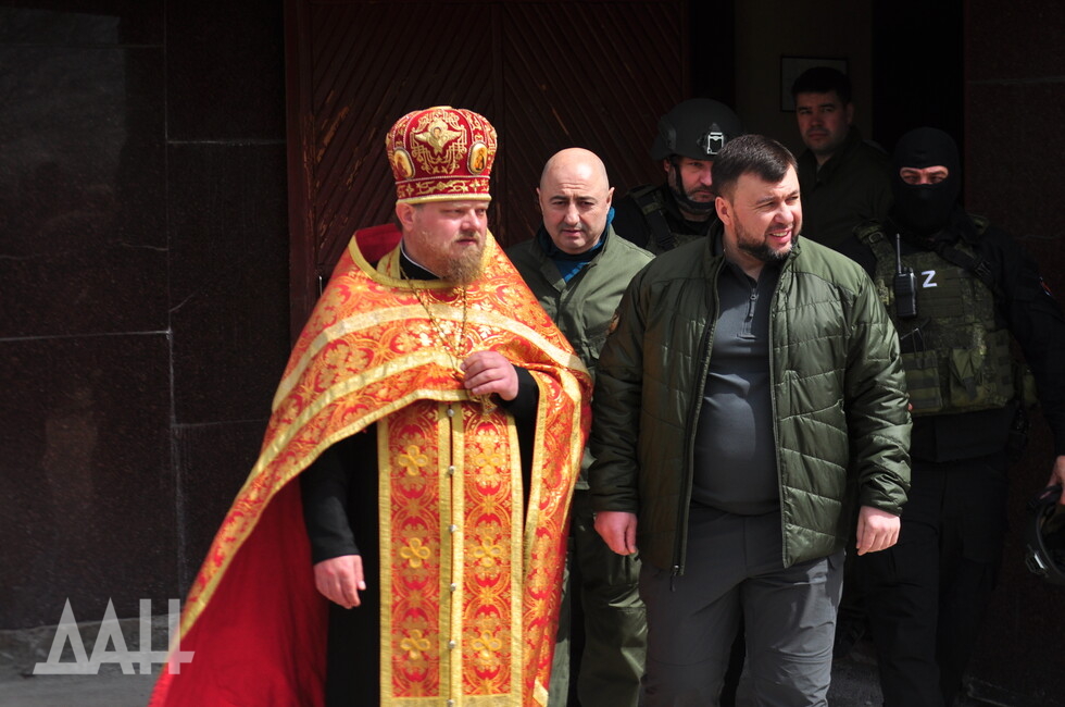 Мариуполь 24 апр. – корр. ДАН. Глава ДНР Денис Пушилин в православный праздник Светлого Воскресения Христова посетил храм Архистратига Божия Михаила в Левобережном районе Мариуполя, передает корр. ДАН.