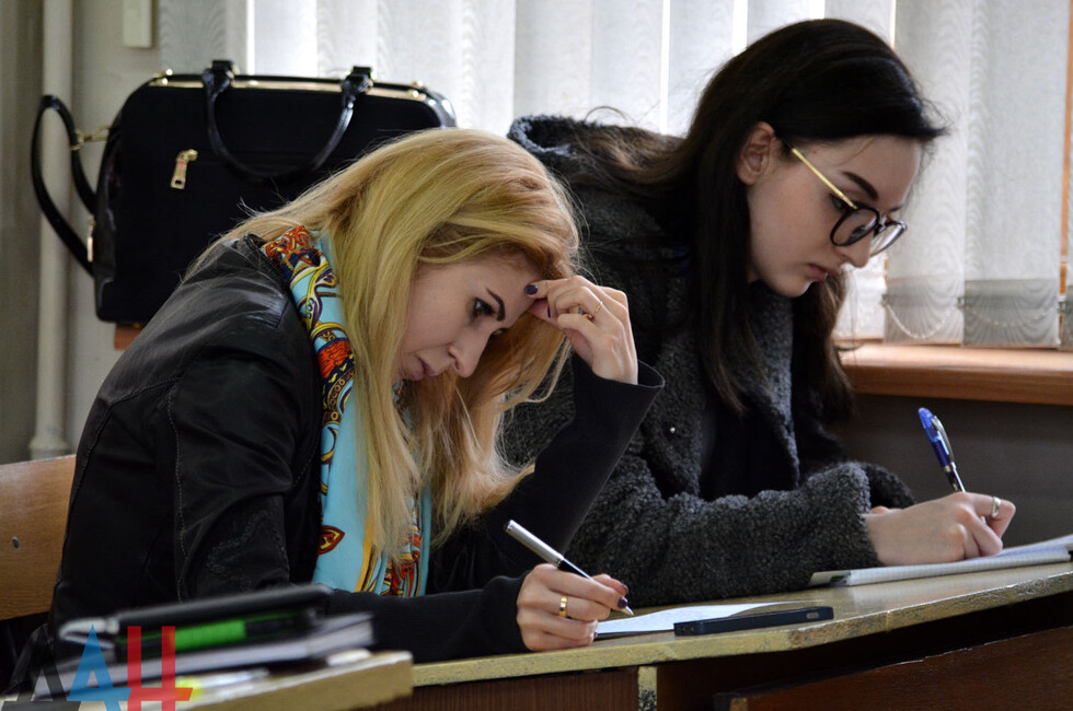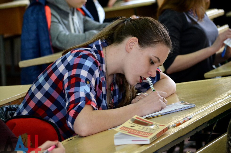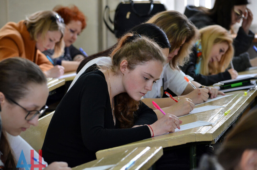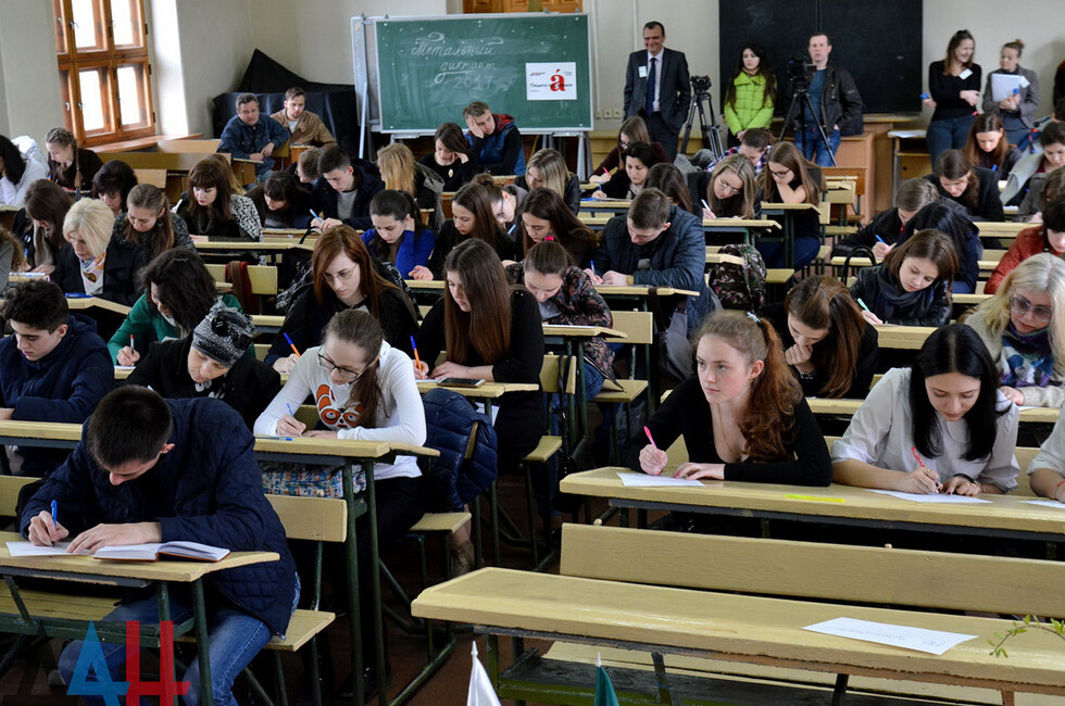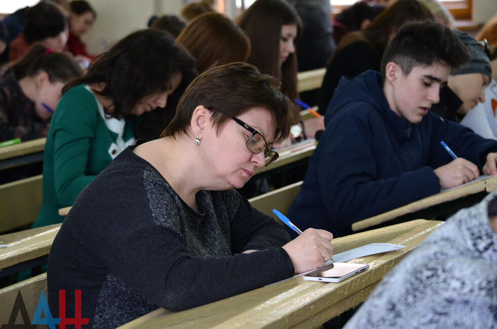 Желающие поучаствовать в тотальном диктанте были и среди жителей подконтрольной Украине территории, где акцию отменили. В их числе - 57-летняя жительница Галина Бондаренко из Запорожья. «Я специально приехала поучаствовать в акции, делаю это уже второй год подряд. В прошлом году у меня была ошибка, диктант я написала на «четыре»», - рассказала корр. ДАН Бондаренко.