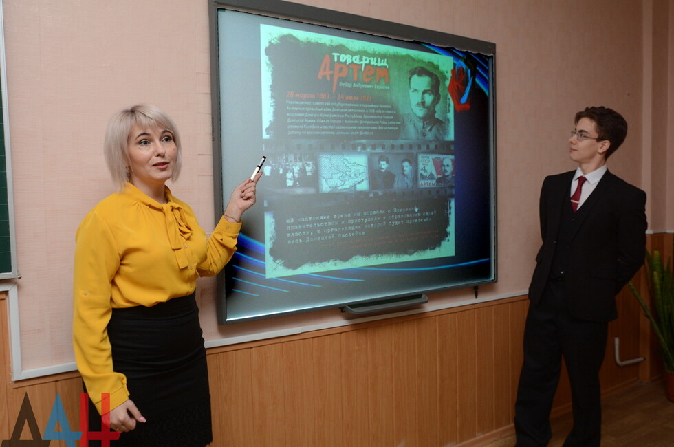 В столичной школе № 48 прошел урок мужества «Донецко-Криворожская Республика – Донецкая Народная Республика: исторические параллели». В ходе занятия дети узнали о биографии основателя ДКР Артема (Федора Сергеева). Также им рассказали об особенностях устройства Донецко-Криворожской Республики, например о первой донецкой армии.