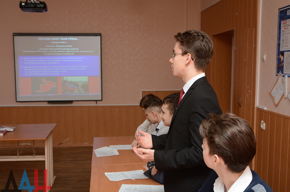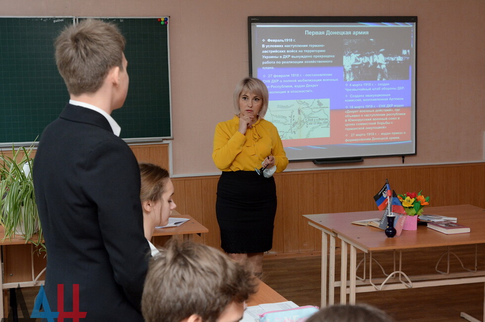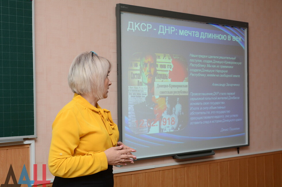 Донецк, 12 фев – корр. ДАН. Уроки по случаю 103-й годовщины со дня провозглашения Донецко-Криворожской Республики прошли сегодня в общеобразовательных учреждениях ДНР.