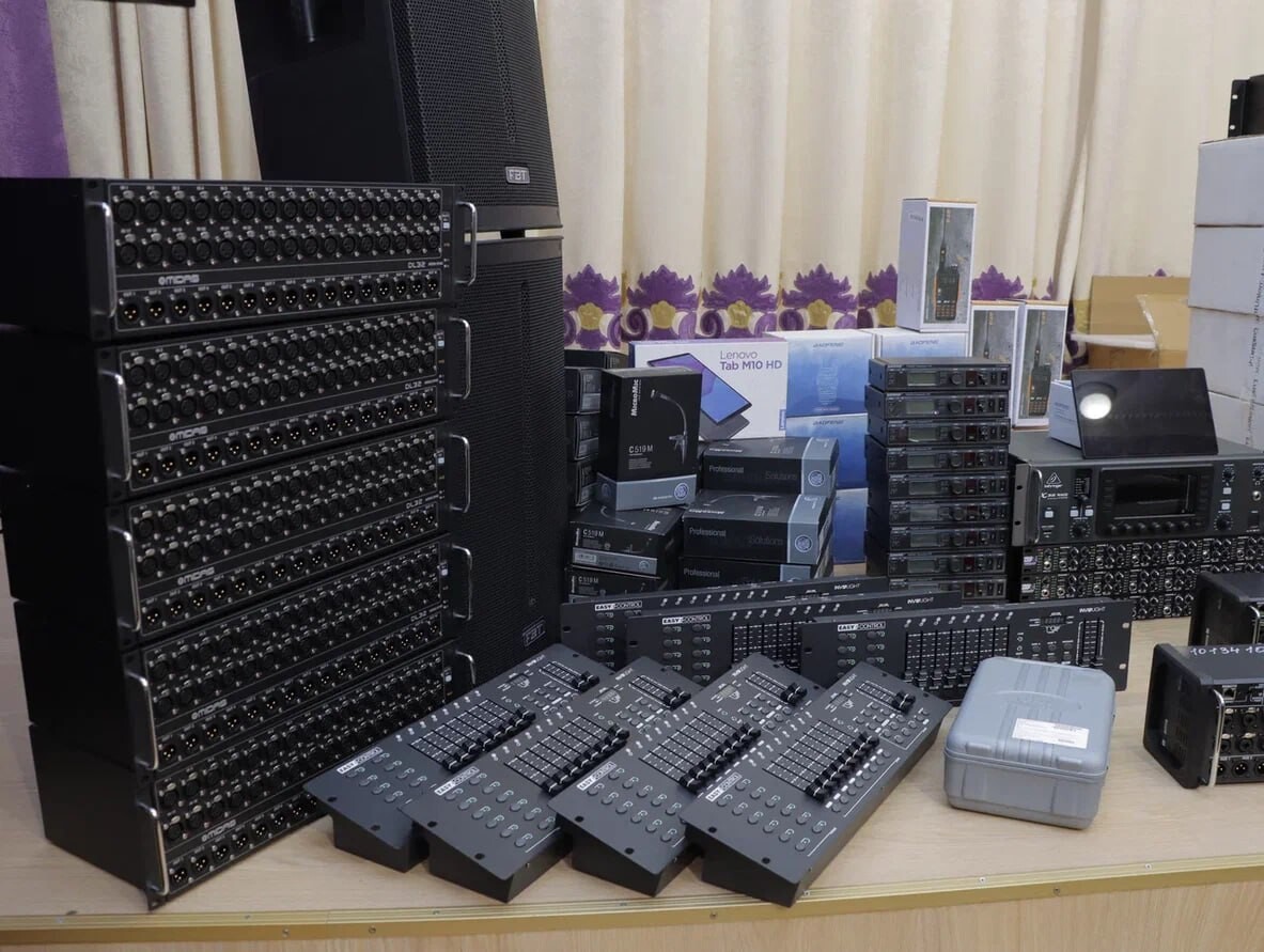В Донецкой государственной академической филармонии завершился этап масштабного обновления технической базы. Благодаря национальному проекту «Семья» учреждение культуры пополнилось современными микрофонами и стойками, вокальными и инструментальными радиосистемами, планшетами, цифровыми микшерными и дирижерскими пультами, полным комплектом светового оборудования и прожекторами. Обновилась также оркестровая мебель, акустические системы и парк сабвуферов.