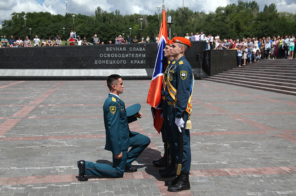 Завершилось мероприятие церемонией прощания со Знаменем Академии. Кроме того, присутствующие возложили цветы к монументу «Твоим освободителям, Донбасс» и почтили память героев минутой молчания.