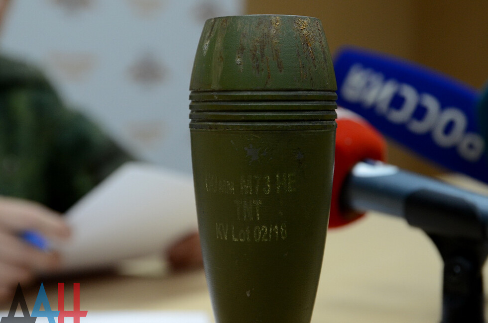 Донецк, 8 ноя – ДАН. Украинские силовики при обстрелах территории ДНР начали применять минометы калибром 60 мм из стран НАТО. Фрагменты мин сегодня на брифинге в Донецке продемонстрировал замначальника Управления Народной милиции Республики Эдуард Басурин.