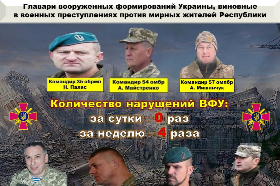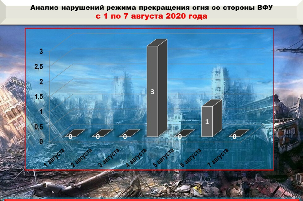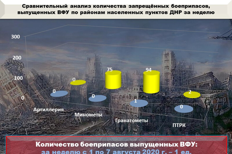 Графика содержит общую информацию о нарушениях украинской стороной режима прекращения огня и мер контроля перемирия за неделю.*мк