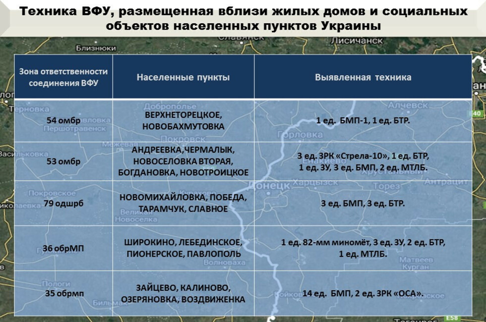 По данным Басурина, они шли вдоль всей линии разграничения - в районах населенных пунктов Авдеевка, Водяное, Красногоровка, Марьинка, Новолуганское, Новотроицкое, Опытное, Пески, Пищевик, Старогнатовка, Троицкое, Шумы. Работы сопровождались минированием позиций.