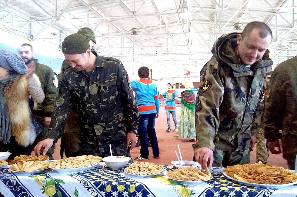 "Мы хотели поддержать ребят, поднять их боевой дух, поэтому решили в Прощеное воскресенье, на Масленицу пригласить самые героические наши батальоны «Спарта» и «Сомали», - сообщила Ковалева. - Мы устроили дня них праздник по-домашнему, насколько это возможно, чтобы ребята отвлеклись от военных будней".