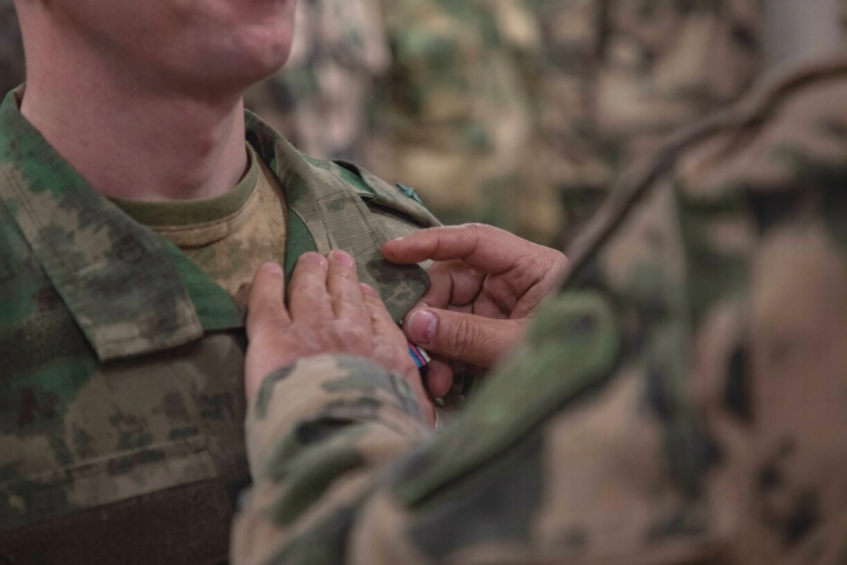 Командующий группировкой войск национальной гвардии вручил ведомственные медали за проявленные храбрость, профессионализм и преданность службе.