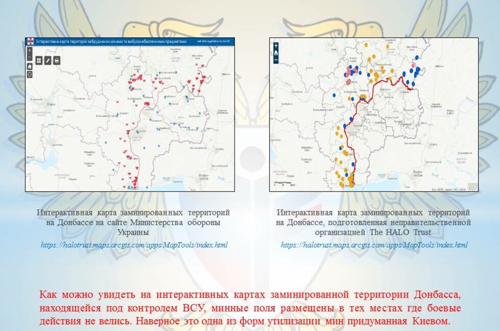 Применение Киевом этих взрывных устройств и продолжение минирования в Донбассе противоречит также закону Украины «О противоминной деятельности». Он вступил в силу в январе 2019 года, но позднее дважды менялся. Действующая редакция предполагает создание центров противоминной деятельности и целый комплекс мероприятий по поиску и утилизации мин.