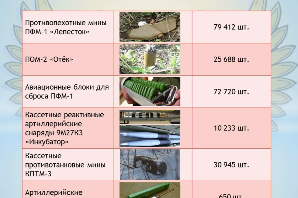 Оттавский договор (1999 года) запрещает накопление, применение и производство противопехотных мин. Подписан более чем 60 странами, в том числе Украиной. Документ предусматривает уничтожение мин в четырехлетний срок и разминирование минных полей в десятилетний. Есть исключение – возможность сохранения небольшого объема в учебных целях.