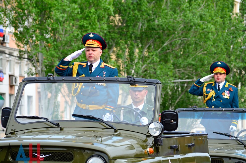 Командовал праздничным парадом командующий оперативным командованием ДНР генерал-майор Денис Синенков, принимал парад министр обороны ДНР генерал-майор Владимир Кононов. На параде присутствовали Глава Республики Александр Захарченко и председатель Народного Совета Денис Пушилин.