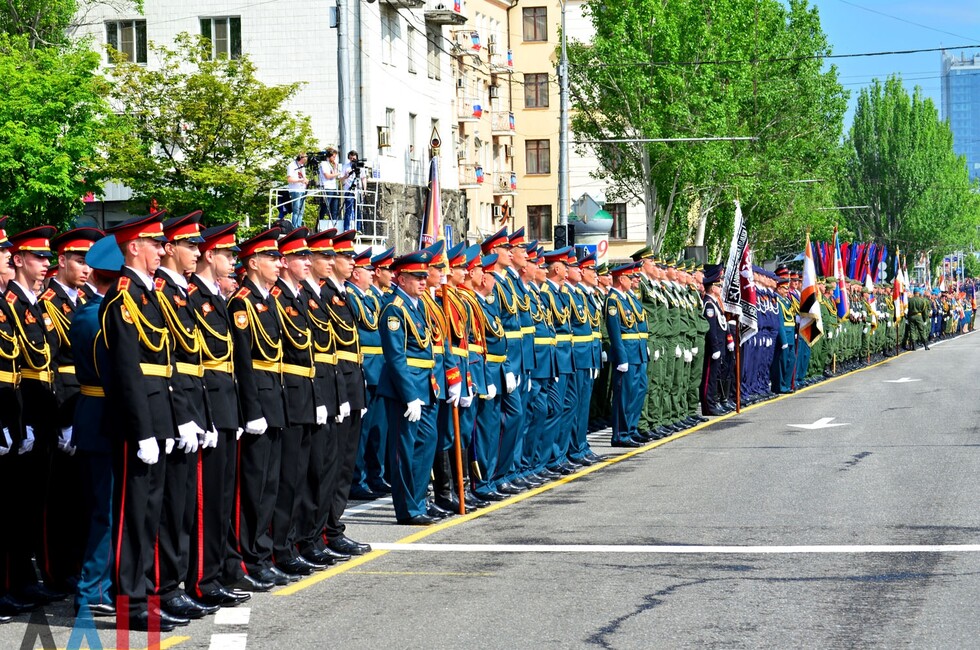 Донецк, 9 мая – корр. ДАН. Военный парад в честь 71-й годовщины Победы в Великой Отечественной войне прошел сегодня в Донецке. Торжественным маршем по центральной улице столицы прошли военнослужащие, сотрудники МЧС и МВД, курсанты военных училищ.