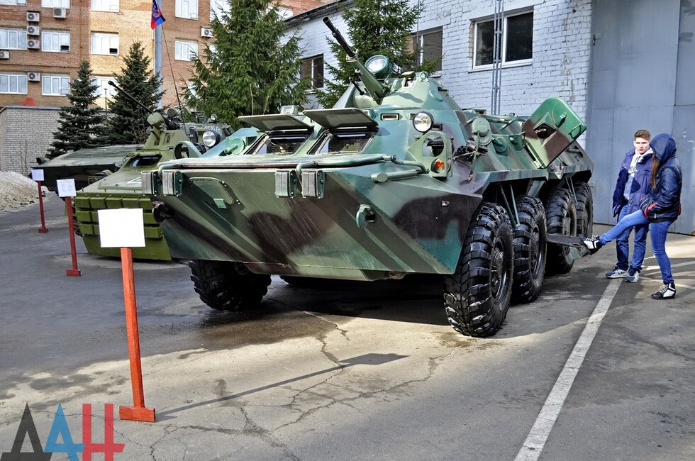 Экспозиция включила около десятка единиц боевой техники, в частности БТР и БМП, а также образцы стрелкового оружия. Наряду с выставкой в части прошел день открытых дверей. *рб*дя*нк