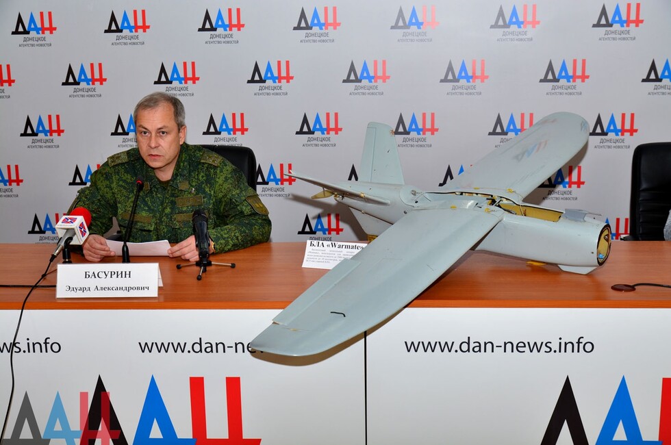 «Проведенное расследование имеющихся фактов показало, что корректировка артиллерийского огня велась с помощью беспилотного летательного аппарата, находящегося перед вами, сбитого нашими подразделениями», - сказал заместитель командующего оперативным командованием ДНР Эдуард Басурин.