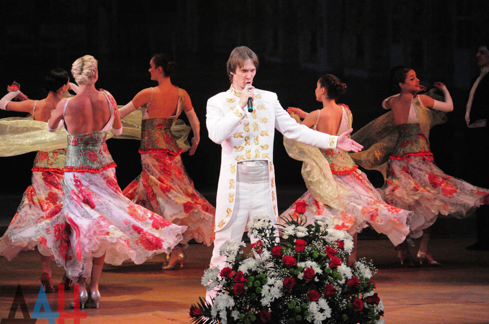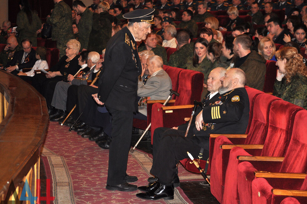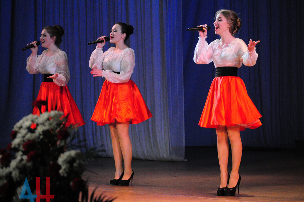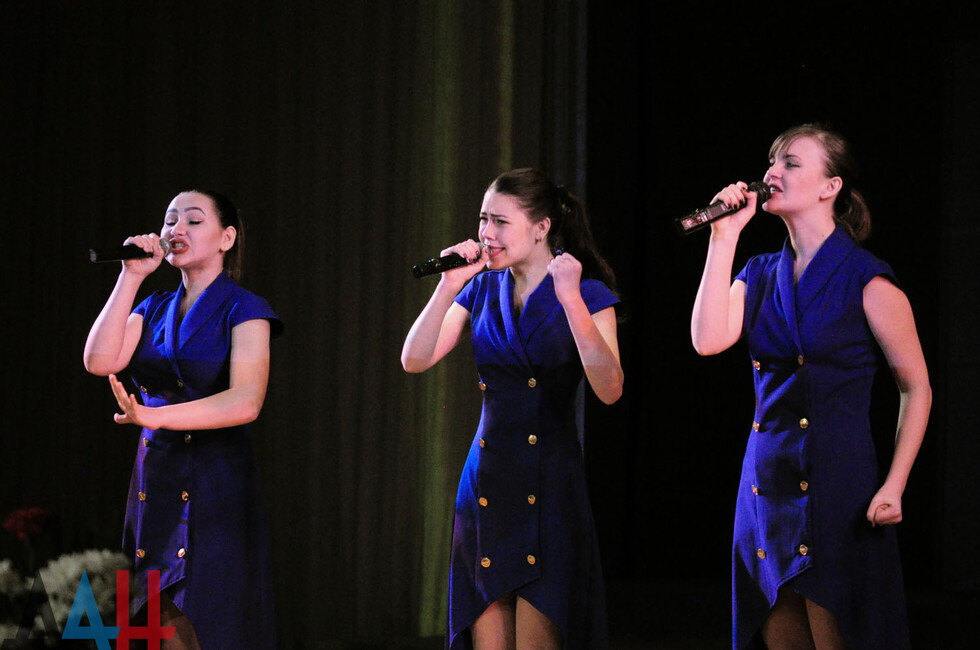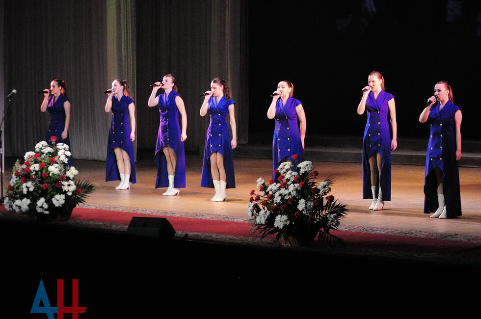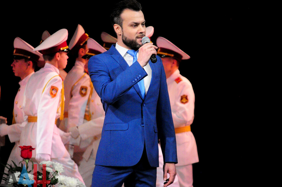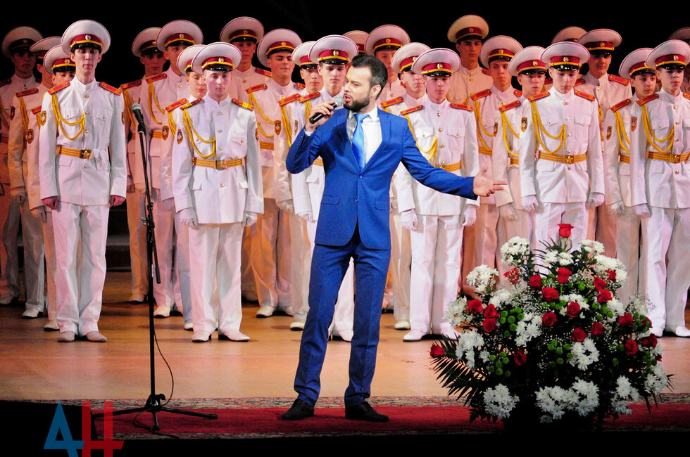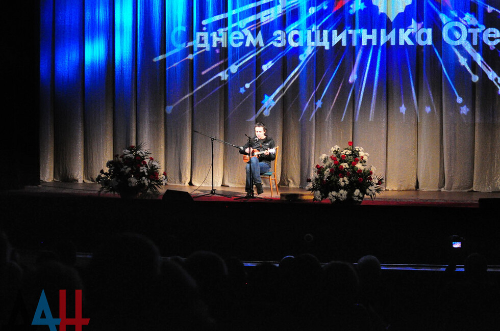 Торжественная часть праздника завершилась концертом. На сцене театра выступили ведущие артисты Донецкой Народной Республики. Для гостей прозвучали композиции «Офицеры», «Ландыши», «Идет солдат по городу», «Русский вальс», «Я люблю тебя, жизнь» и другие. Среди гостей была известная российская рок-певица Юлия Чичерина, которая исполнила песню о войне в Донбассе.