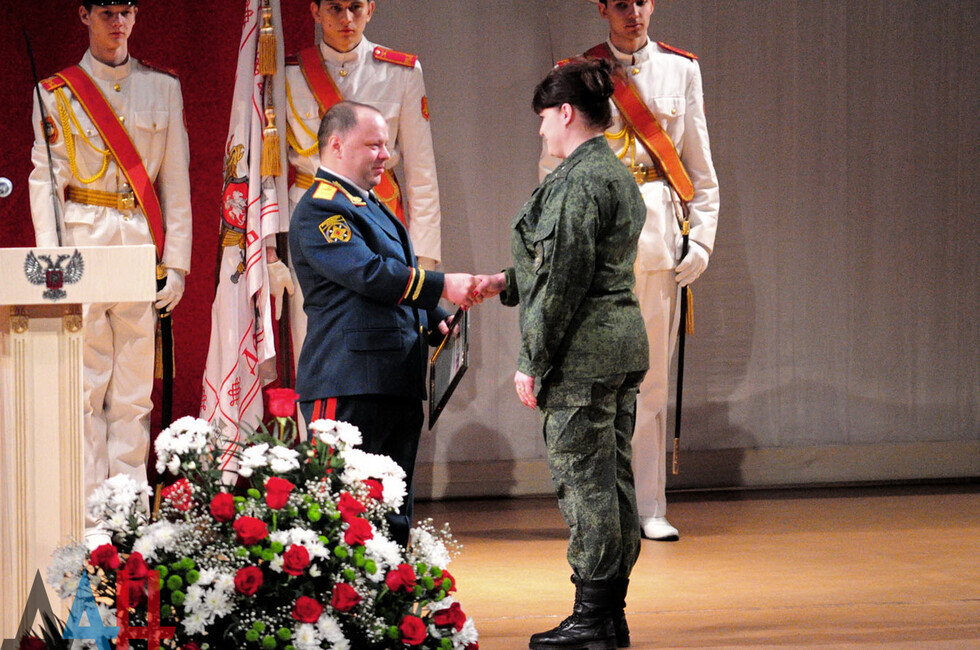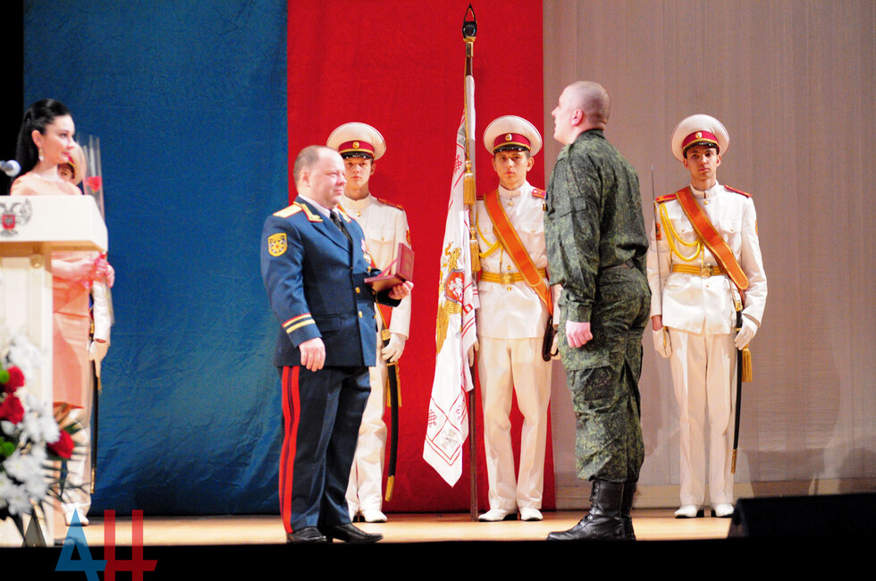 Донецк, 23 фев – корр. ДАН. Военнослужащие ДНР сегодня, в День защитника Отечества, получили награды за мужество, отвагу и отличные показатели в службе, четверым военным вручили документы на квартиры. Торжественная церемония прошла в зале Донецкого государственного академического театра оперы и балета им. Соловьяненко.