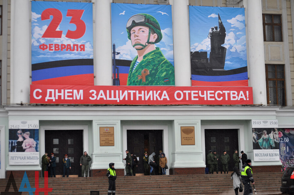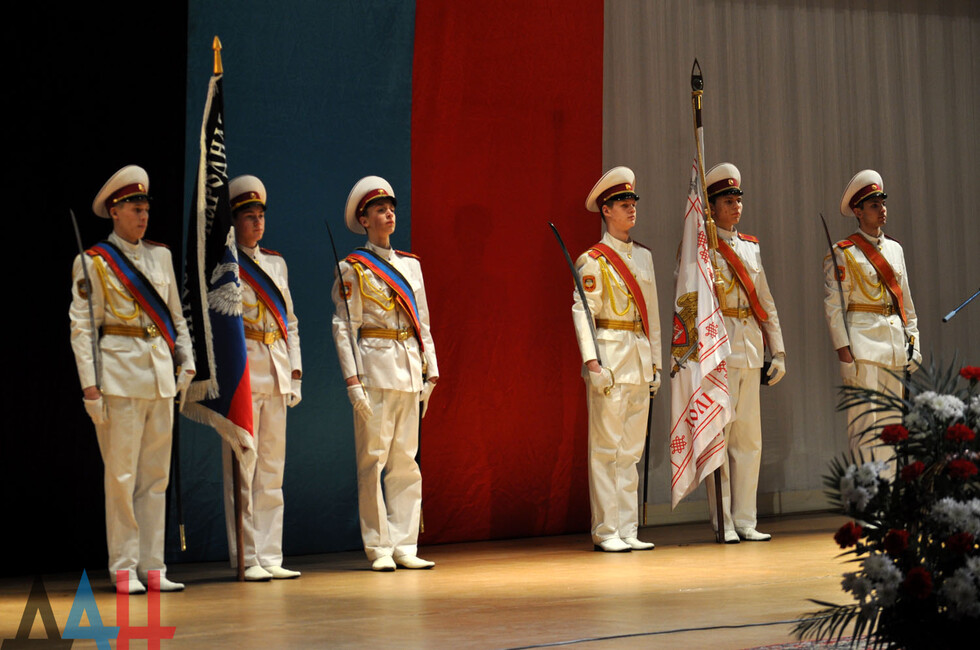 Мероприятие открылось традиционным выносом флага Донецкой Народной Республики и знамени министерства обороны. Затем прозвучал государственный гимн страны. Поздравить защитников с праздником пришли глава оборонного ведомства Владимир Кононов, и.о. министра культуры Михаил Желтяков и депутаты Народного Совета.
