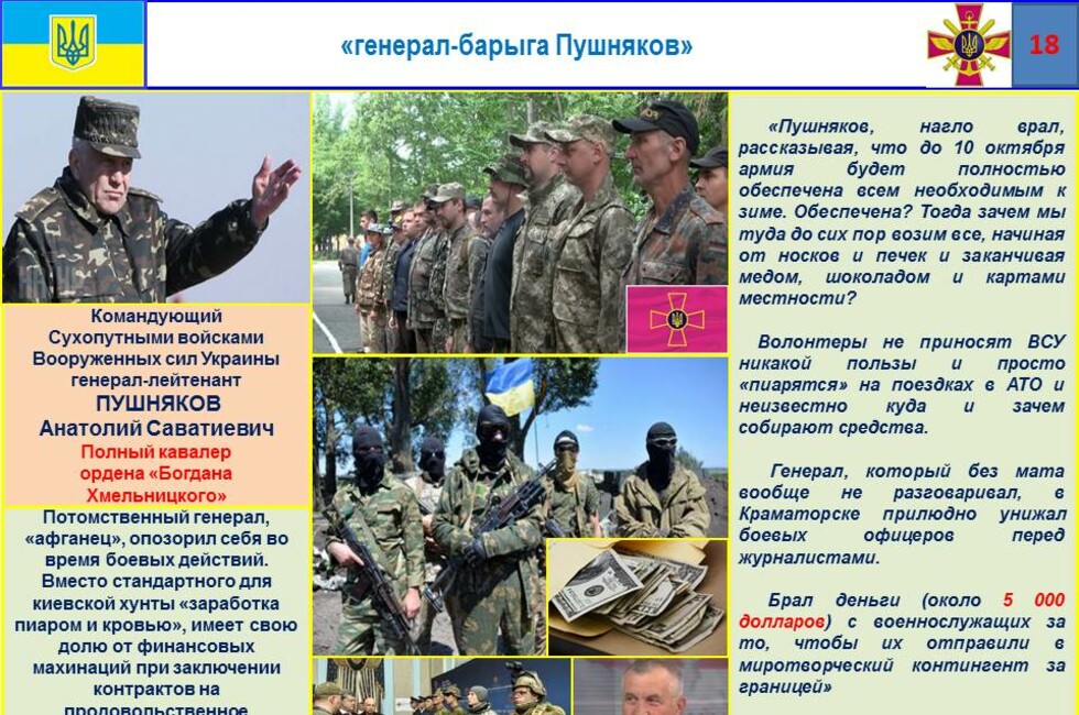 Донецк, 31 окт – ДАН. Министерство обороны ДНР подвело промежуточные итоги карательной операции украинских силовиков на Донбассе и систематизировало данные о коррупционных доходах организаторов кровопролития. Результаты исследования представлены в виде инфографики, которую оборонное ведомство сегодня передало в редакцию ДАН.