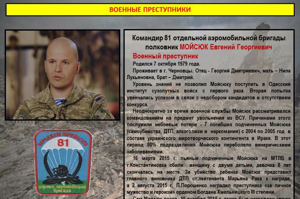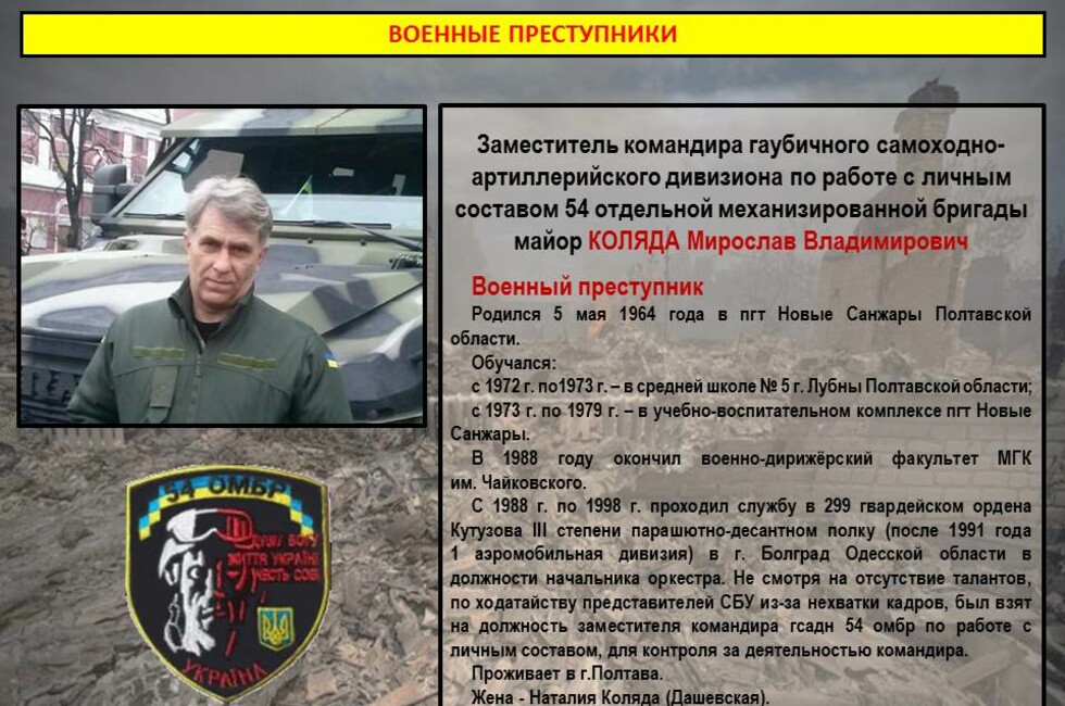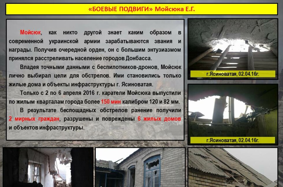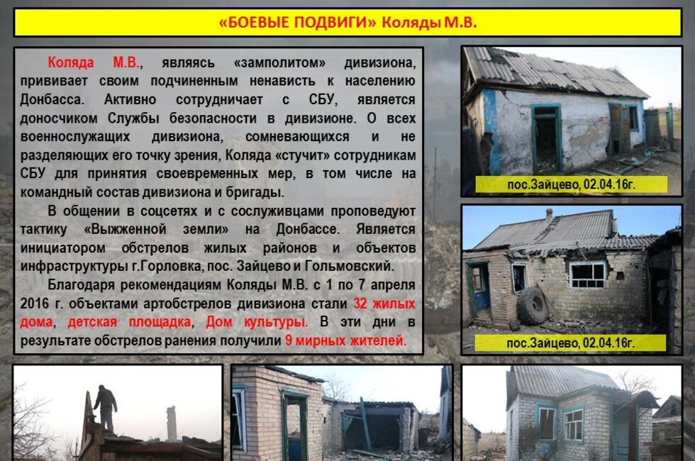 Донецк, 9 апр – ДАН. Министерство обороны ДНР расширило досье на командиров украинских войск, причастных к военным преступлениям в зоне конфликта на Донбассе. Материал, поступивший в редакцию ДАН, включает информацию об офицерах, которые командовали обстрелами поселка Зайцево на северной окраине Горловки, села Коминтерново на юге Донбасса и города Ясиноватая.