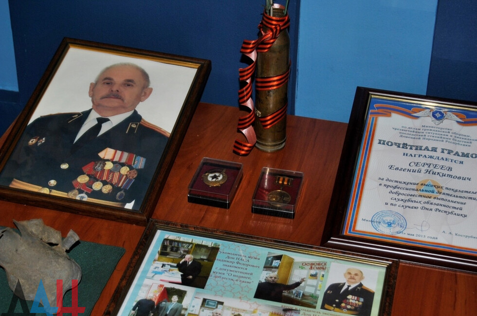Урок патриотизма провел наводчик-оператор ВС Республики, Герой ДНР Андрей Зайцев. Своим взглядом на воспитание любви к Родине у молодежи поделился руководитель курса саперов при МЧС Евгений Сергеев. А сослуживцы Героя ДНР Александра Немогая передали музею снимки своего навечно зачисленного в состав артбригады «Кальмиус» командира.