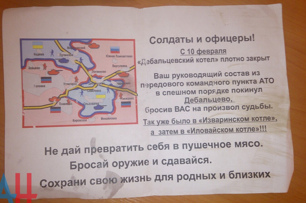 Басурин рассказал также, что ополчение провело в Дебальцевском котле спецоперацию с использованием так называемых "агитснарядов" для распространения среди войск противника листовок с призывами мирно сложить оружие и сдаться в плен. "Личный состав ВСУ, еще раз заявляю, брошен в Дебальцево на произвол судьбы своими командирами", - сказал замкомкорпусом.