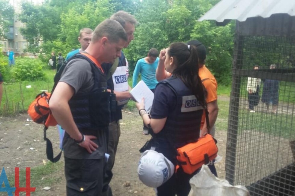 Осмотр поврежденных зданий также проводят представители Специальной мониторинговой миссии ОБСЕ.