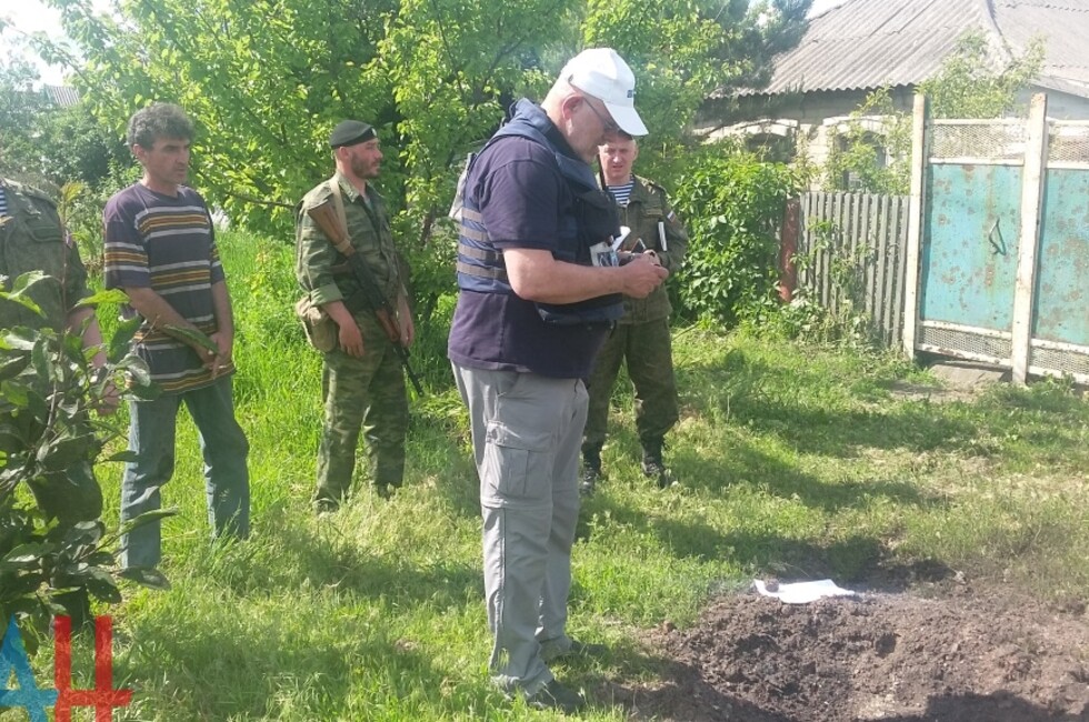 Данные об обстреле мирных кварталов Республики сегодня Минобороны ДНР передало сотрудникам Специальной мониторинговой миссии ОБСЕ. Как сообщает корр. ДАН с места события, сейчас наблюдатели работают на месте обстрела в Старомихайловке. *аа*мк*нк
