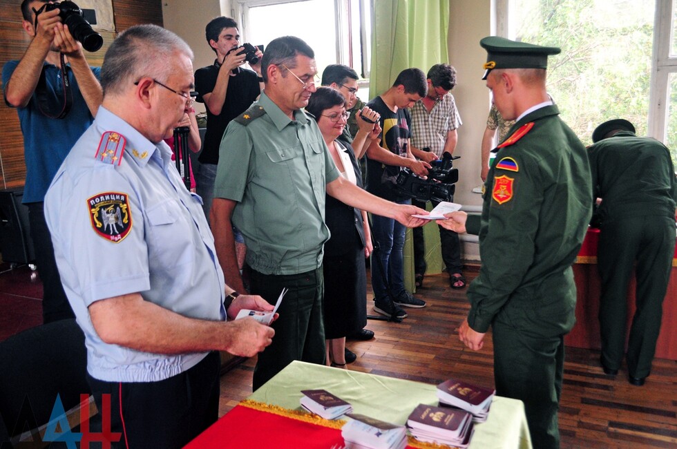 Донецк, 1 июл – корр. ДАН. Порядка 70 курсантов Донецкого высшего командного общевойскового училища сегодня получили паспорта образца ДНР. Торжественная церемония вручения республиканских документов состоялась в актовом зале учебного заведения.