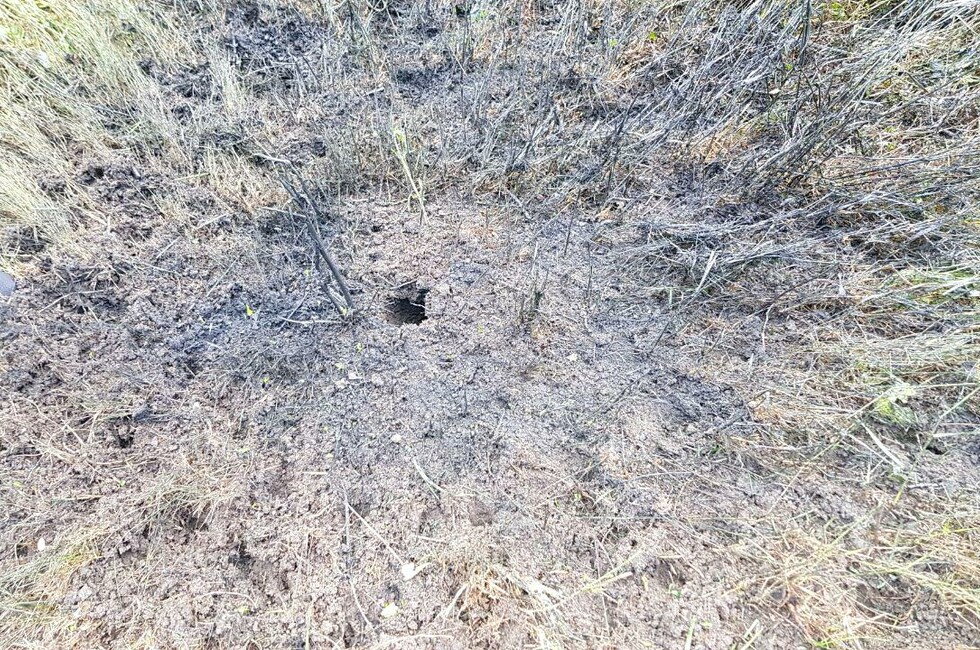 На снимках видны повреждения части купола, следы от осколков на стенах сооружения, а также элементы боеприпасов и воронки.