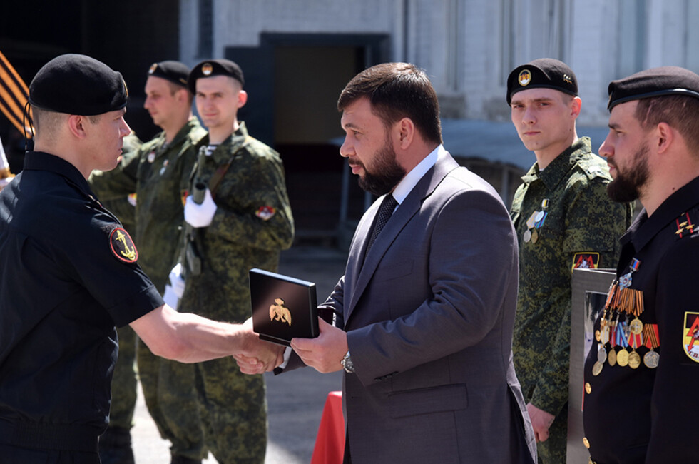 Донецк, 7 мая – ДАН. Глава ДНР Денис Пушилин вручил сегодня знаки отличия – Георгивские кресты – военнослужащим отдельного гвардейского разведывательного батальона «Спарта». Об этом сообщается на официальном сайте лидера государства.