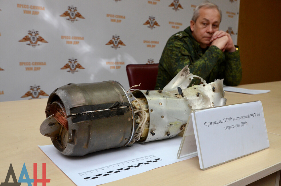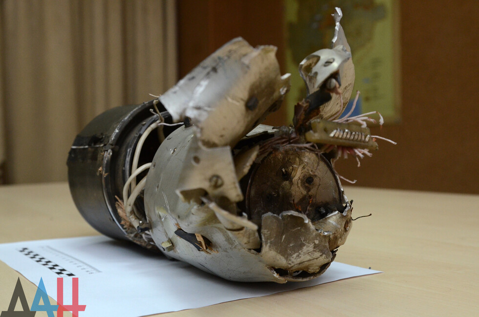 Он добавил, что огонь велся с позиций 56-й отдельной мотопехотной бригады армии Киева. Также на в УНМ продемонстрировали несколько частей обнаруженных боеприпасов противника.
