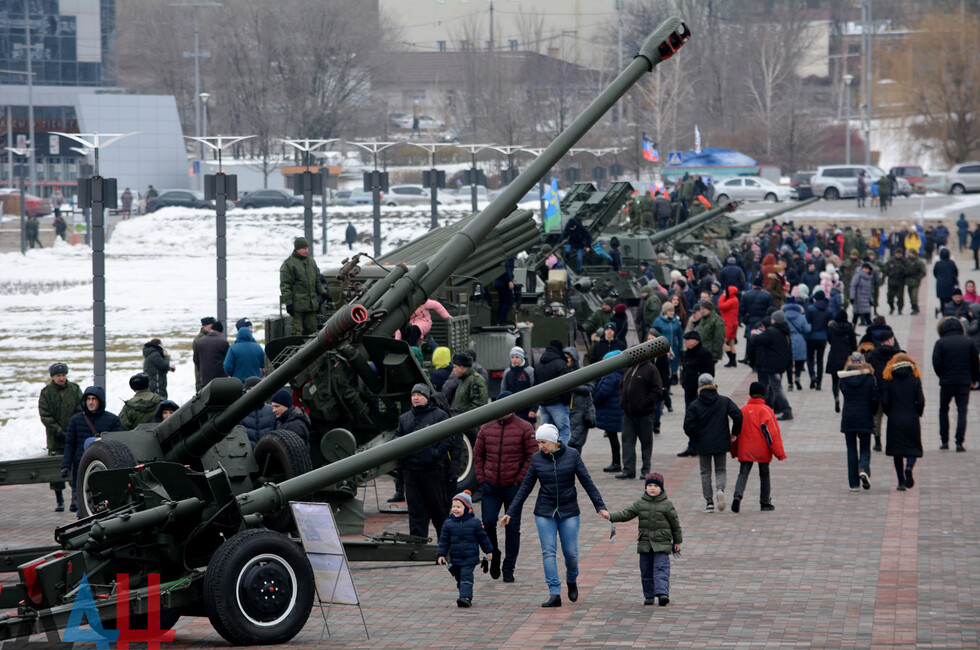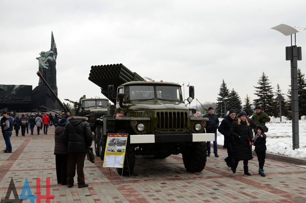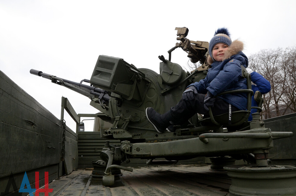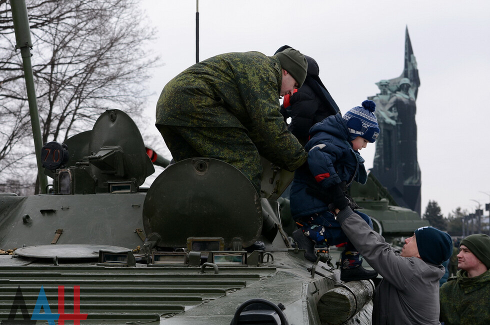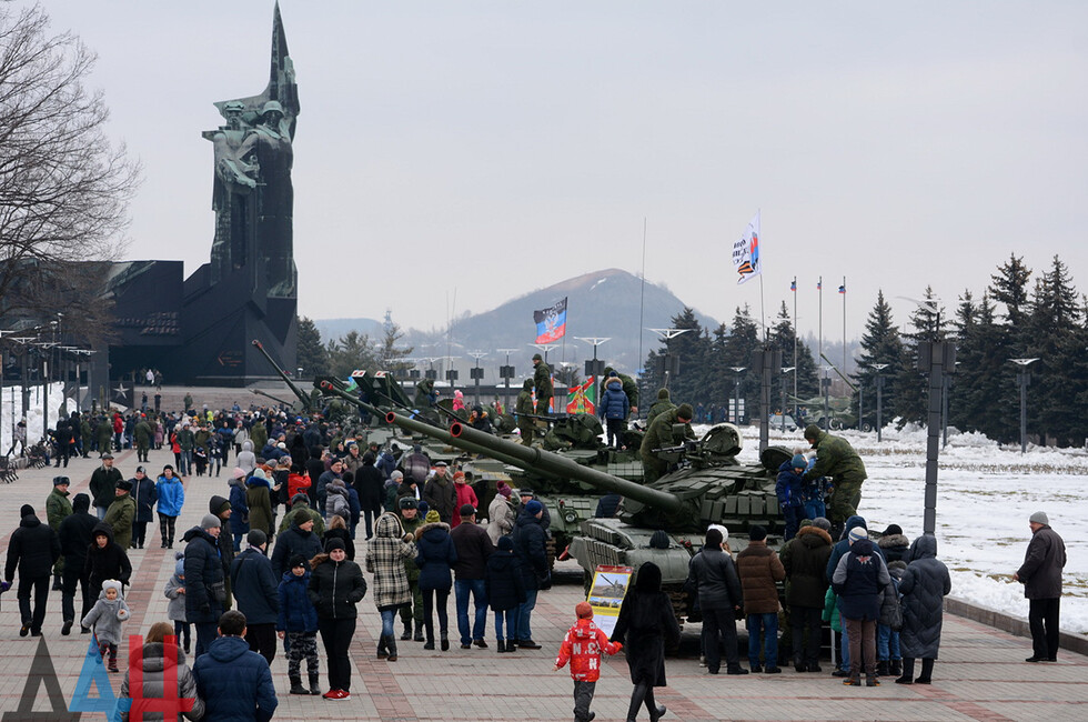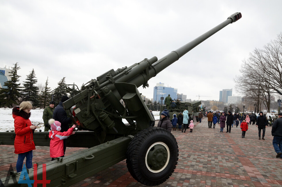 Донецк, 23 фев – корр. ДАН. Выставка военной техники и амуниции, организованная в рамках празднования Дня защитника Отечества, собрала в Донецке сотни жителей и гостей города. Традиционно она прошла у памятника «Твоим освободителям, Донбасс» в парке Ленинского Комсомола.