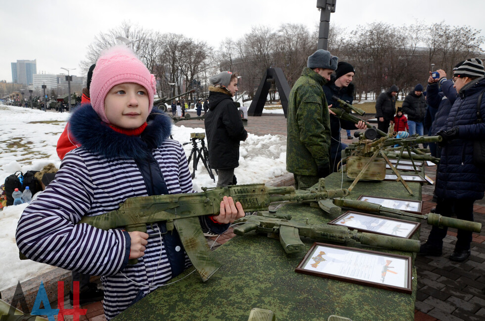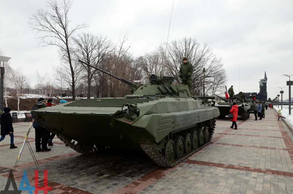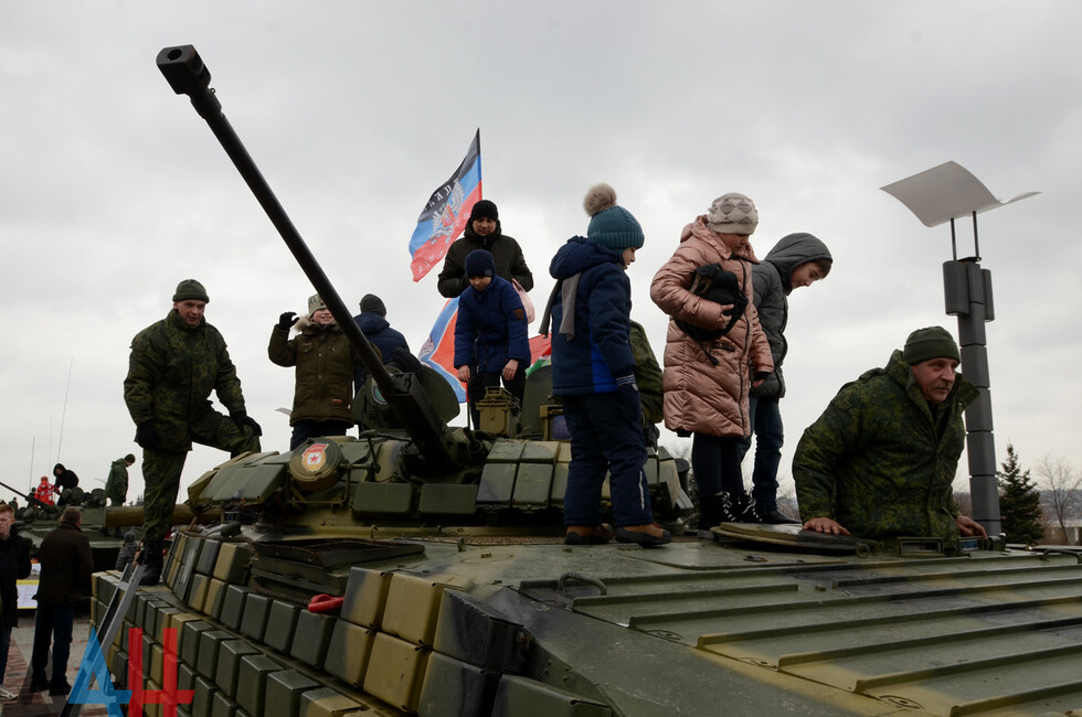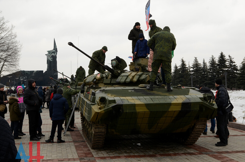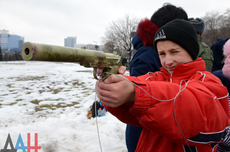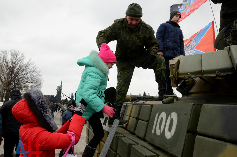 Донецк, 23 фев – корр. ДАН. Выставка военной техники и амуниции, организованная в рамках празднования Дня защитника Отечества, собрала в Донецке сотни жителей и гостей города. Традиционно она прошла у памятника «Твоим освободителям, Донбасс» в парке Ленинского Комсомола.