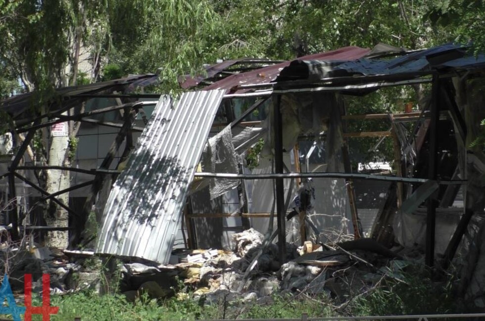 Предыдущей ночью, с 5 на 6 июня, в развалины превратился поселковый кинотеатр «Аврора»: прямое попадание снаряда привело к масштабным разрушениям и пожару. В момент приезда представителей Минобороны возле обгоревшего здания уже беспечно катаются на велосипедах дети.