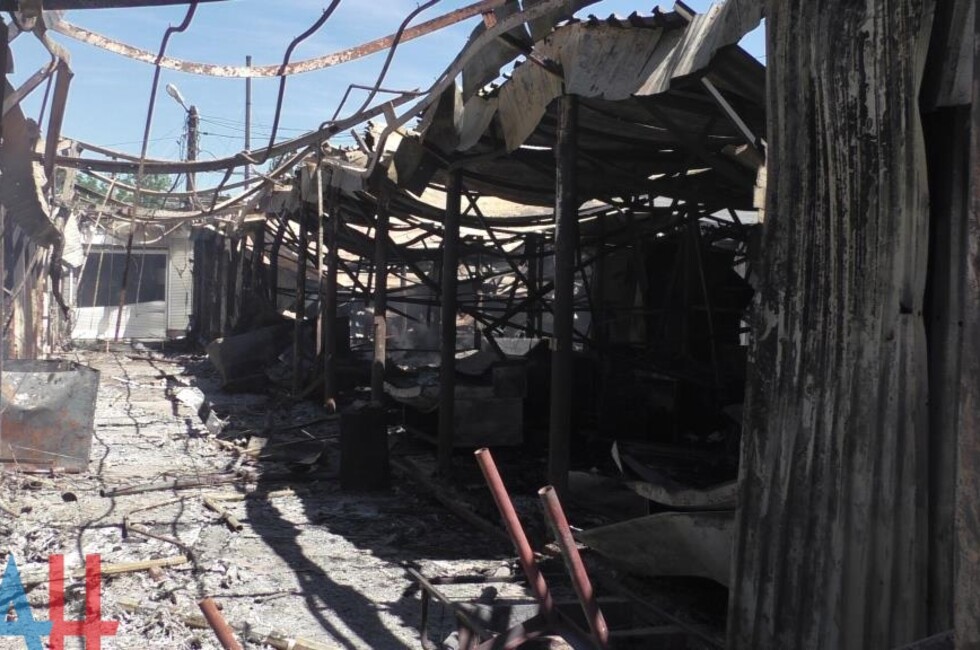 О пережитом ночном кошмаре свидетельствует и центральный рынок поселка, здание которого превратилось в груду искореженного металла. Стойкий запах дыма и плавленой пластмассы, местами еще горящие контейнеры не останавливают торговцев: со своим товаром они, как и всегда, вышли на рыночную площадь.