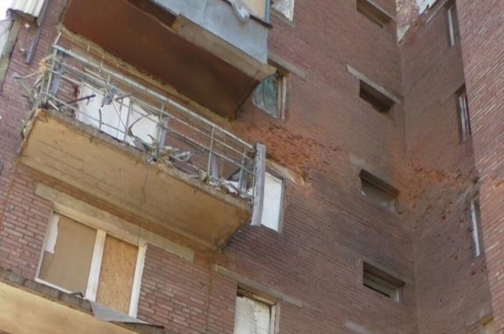 Пострадавшая девятиэтажка находится на проспекте Маршала Жукова. К приезду на место трагедии представителей Совместного центра по контролю и координации режима прекращения огня и Минобороны ДНР почерневшие оконные проемы последних четырех этажей еще дымились.