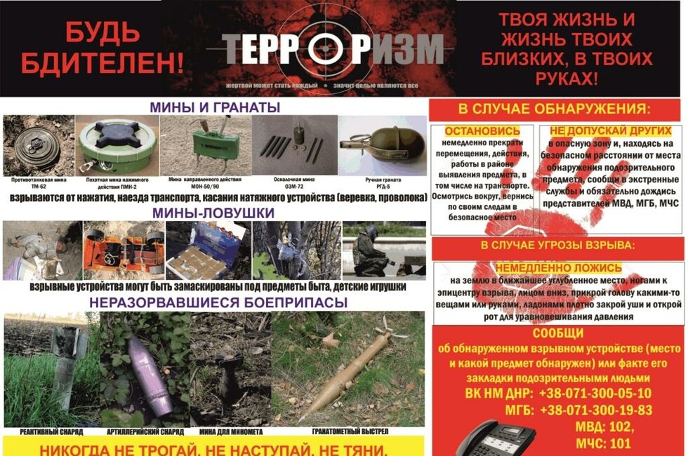 «В связи с террористической угрозой в Республике, вызванной активизацией сил специальных операций ВСУ, командованием и руководством МГБ, МВД, МЧС разработаны плакаты для информирования населения о признаках взрывных устройств и действиях жителей в случае их обнаружения», - сказал замкомандующего.