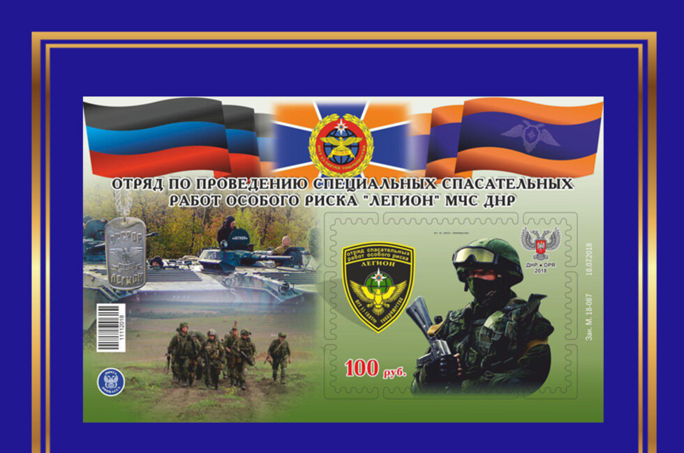 Добавим, что сегодня по случаю трехлетия спецотряда «Легион» государственное предприятие «Почта Донбасса» ввела в обращение марку, блок, конверт и специальный почтовый штемпель.