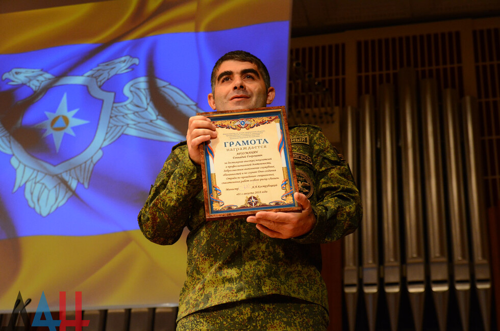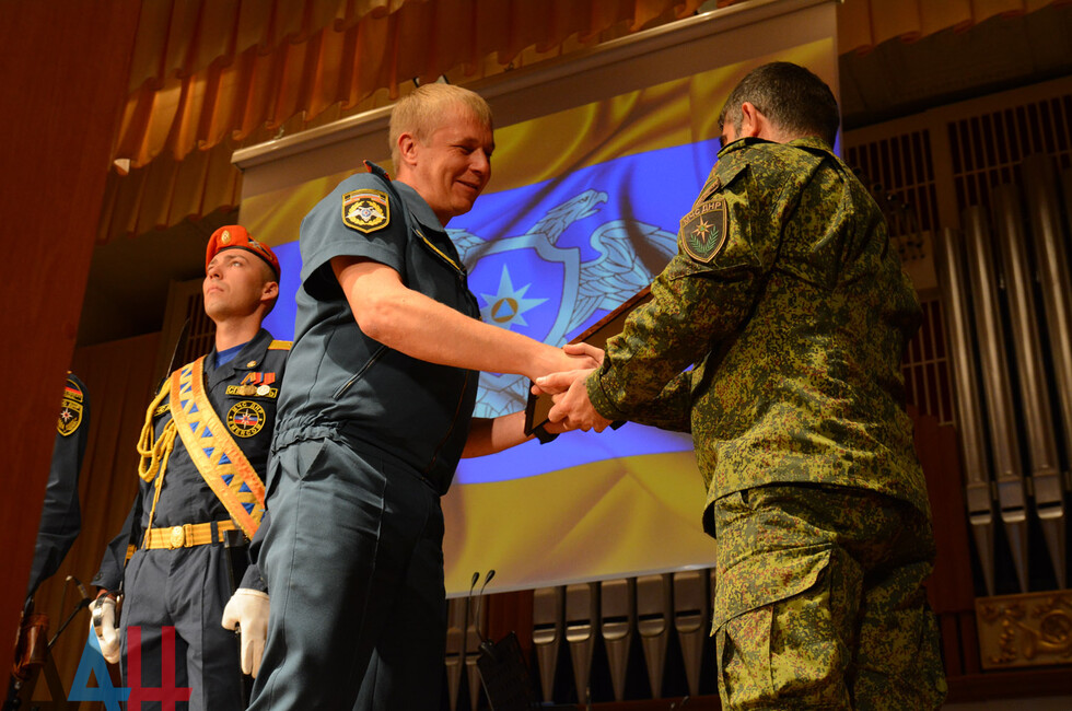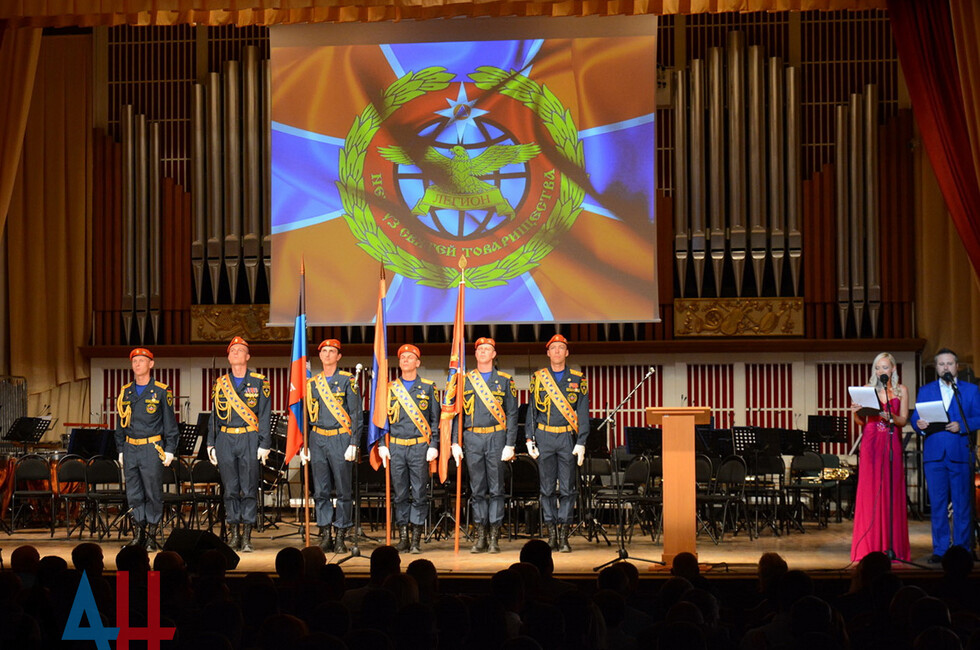 Донецк, 24 авг - ДАН. Отряд по проведению специальных работ особого риска "Легион" МЧС ДНР отметил сегодня третью годовщину создания. Торжества прошли в Донецкой государственной академической филармонии.