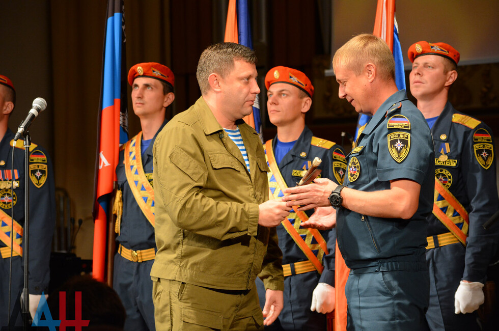 Поздравить бойцов пришел Глава ДНР Александр Захарченко, руководитель МЧС ДНР Алексей Кострубицкий.