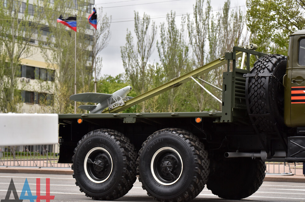 Завершали колонну пусковые установки с трофейными беспилотными летательными аппаратами украинской армии, перехваченные силами ДНР и взятыми впоследствии на вооружение в Республике. Также впервые на параде проехали гусеничные плавающие транспортеры (ПТС-2).